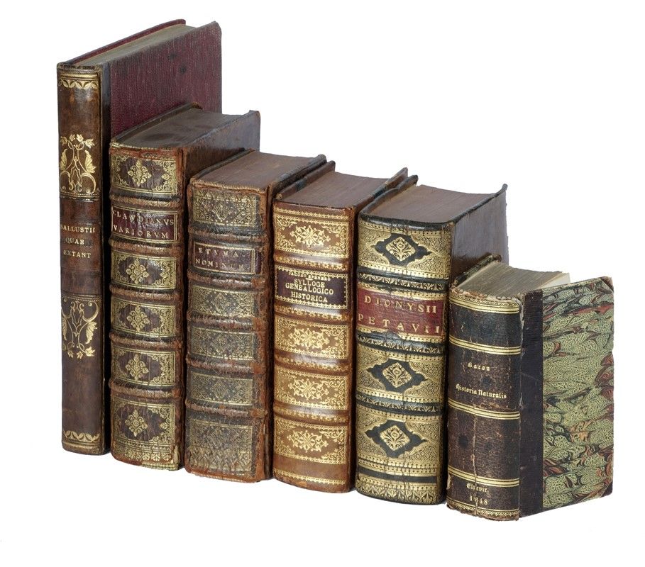 Compongono il lotto: 1) Petau Denis, Opera poetica. Parisiis: apud Sebastianum Cramoisy, 1621 (?). Difetti. 2) Bacon Francis, Sylva sylvarum sive historia naturalis in decem centurias distribuita. Amsterdam: 1648. 3) Pasor Georg, Etyma nominum proprium itemque analysis. Herbornae Nassoviorum, 1663. 4) Claudianus Claudius, Variorum commentaria. Amstelodami; ex officina Elzeviriana, 1665. 5) Spernero Filippo Jacobo, Sylloge genealogica historica numero praecipiarum... Francofurti ad Manum: Zunneri, 1677. 6) Sallustius Crispus Gaius, Quae extant in usum serenissim galliarum Delphini. Parisiis: Leonard, 1674.