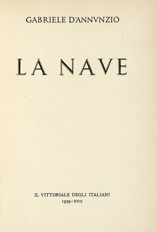 Compongono il lotto: 1) D'Annunzio Gabriele, Francesca da Rimini... Milano: Treves, 1902. 2) Id., La nave. Il Vittoriale degli Italiani, 1939. 3) Id., La figlia di Iorio. Il Vittoriale degli Italiani, 1939. 4) Id., La fiaccola sotto il moggio. Il Vittoriale degli Italiani, 1940. 5) Id., Fedra. Il Vittoriale degli Italiani, 1940. 6) Id., Più che l'amore. Il Vittoriale degli Italiani, 1940. 7) Id., Francesca da Rimini. Il Vittoriale degli Italiani, 1940.