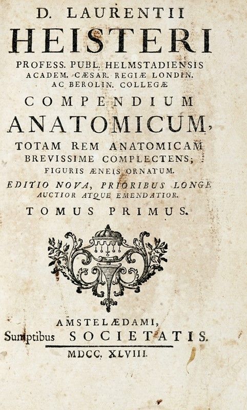 Compongono il lotto: 1) Heister Lorenz, Compendium anatomicum. Tomus primus (-secundus). Amsterdam, 1748 2 parti in un volume. 2) Auda Domenico, Breve compendio di maravigliosi secreti. Bassano: Remondini, 1730. 3) Sturm Johann Christoph, Mathesis juvenilis tomus posterior. Norimbergae: Hoffmann, 1701. Solo secondo tomo, parte prima. 4) Barreme François, L'arithmétique. Rouen: Dumesnil, 1779. 5) Tissot Clément-Joseph, Ginnastica medico-chirurgica. Venezia: Pompeati, 1785. 6) Minonzio, Relazione intorno a cinque casi di fulminazione. Milano, 1852. LEGATO CON: Id., Intorno alla gangrena osservatasi nell'ospedale militare provvisorio di S. Francesco in Milano. Milano, 1860. 7) Catellacci Antonio, Corso elementare di notomia. Tomo primo. Pisa: Ranieri Prosperi, 1806. 8) Spallanzani, Opuscules de physique, animale et vegetale. Tome premier (-seconde). Pavie, Paris: Duplain, 1787. 2 volumi.
