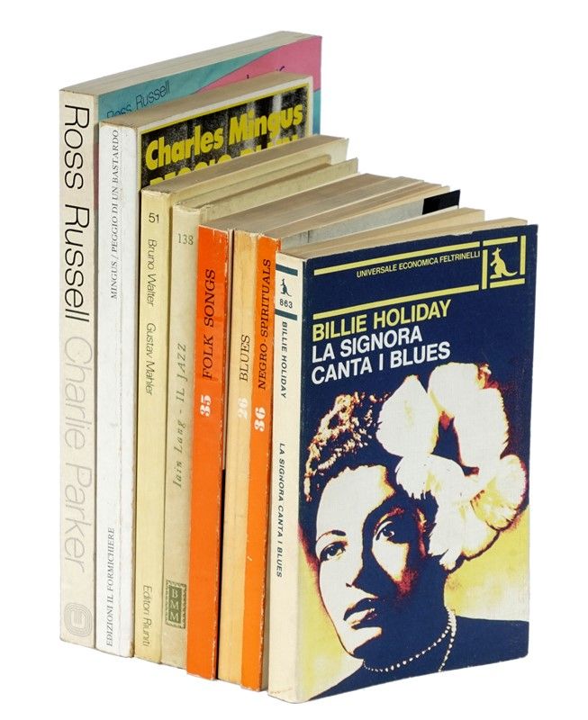Compongono il lotto: 1) Folk Songs. Parma: Guanda editore, 1966; 2) Antologia del Blues. Parma: Guanda editore, 1965; 3) Negro spirituals. Parma: Guanda, 1966; 4) Lang Iain, Il Jazz a cura di Roberto Leydi. S.l.: Mondadori, 1960; 5) Russel Ross, Charlie Parker. Milano: Libri Edizioni, 1978. Elenco completo disponibile su richiesta.