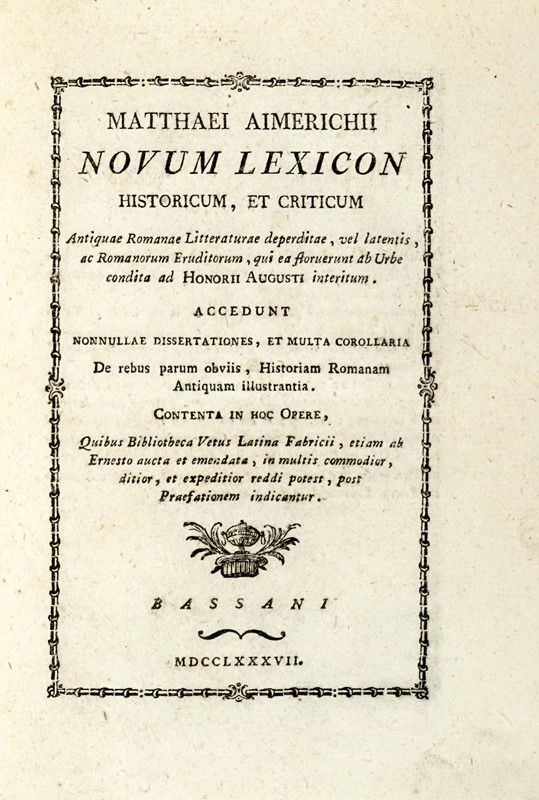 In-4° (mm 190x133). Testatine e finalini in legno nel testo. Internamente ottimo stato conservativo. Legatura in piena pergamena con titoli in oro su tassello in pelle al dorso. Lievi abrasioni ai piatti. Rare postille di mano antica nel testo.
