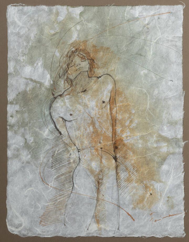 32x24 china su carta seta, Opera firmata in basso a destra, Al retro etichetta dell'atelier dell'artista con titolo, data, misure e tecnica