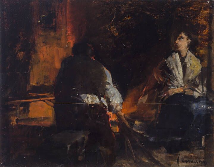 31x40 olio su tavoletta applicata su nuova tavoletta Opera firmata in basso a destra Il dipinto era presente sulla stessa tavola di Maternità e in seguito diviso dalla stessa ad opera del restauratore Guido Nicola Autentica del Prof. Angelo Dragone su fotografia in data 29 dicembre 1993