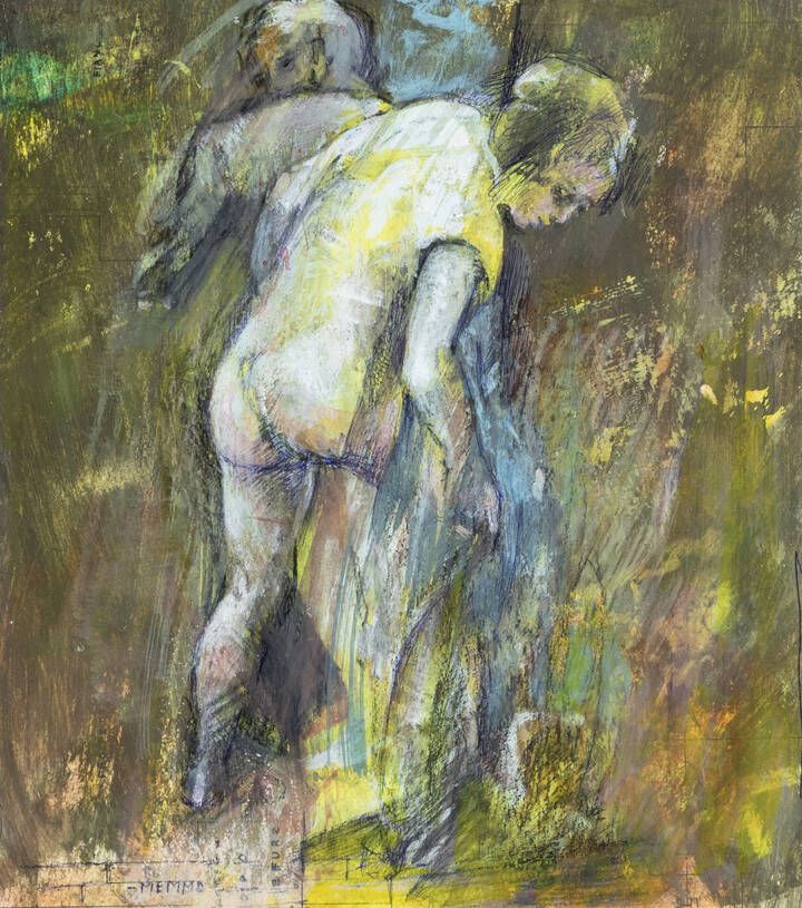 264-22x20 olio su carta applicata su tela Opera firmata in basso a sinistra Già Galleria Trifoglio Arte Chieti (etichetta al retro)