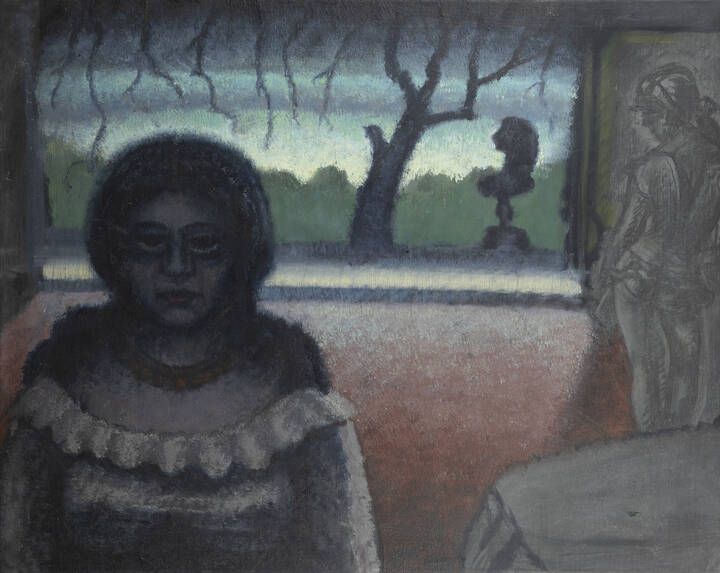 80x100 olio su tela Etichetta manoscritta con titolo e data al retro sul telaio Piccolo foro in basso a destra