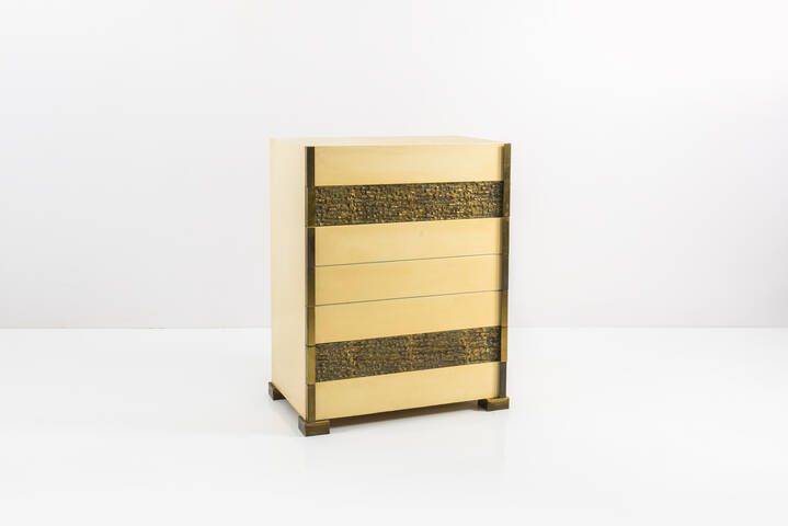 Cassettone in legno laccato con particolari in ottone. Anni '70 cm 110x85x50
