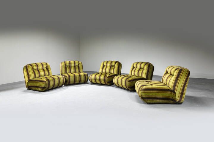 Cinque poltrone modulari con imbottitura rivestita in velluto. Anni '70 cadauna [..]