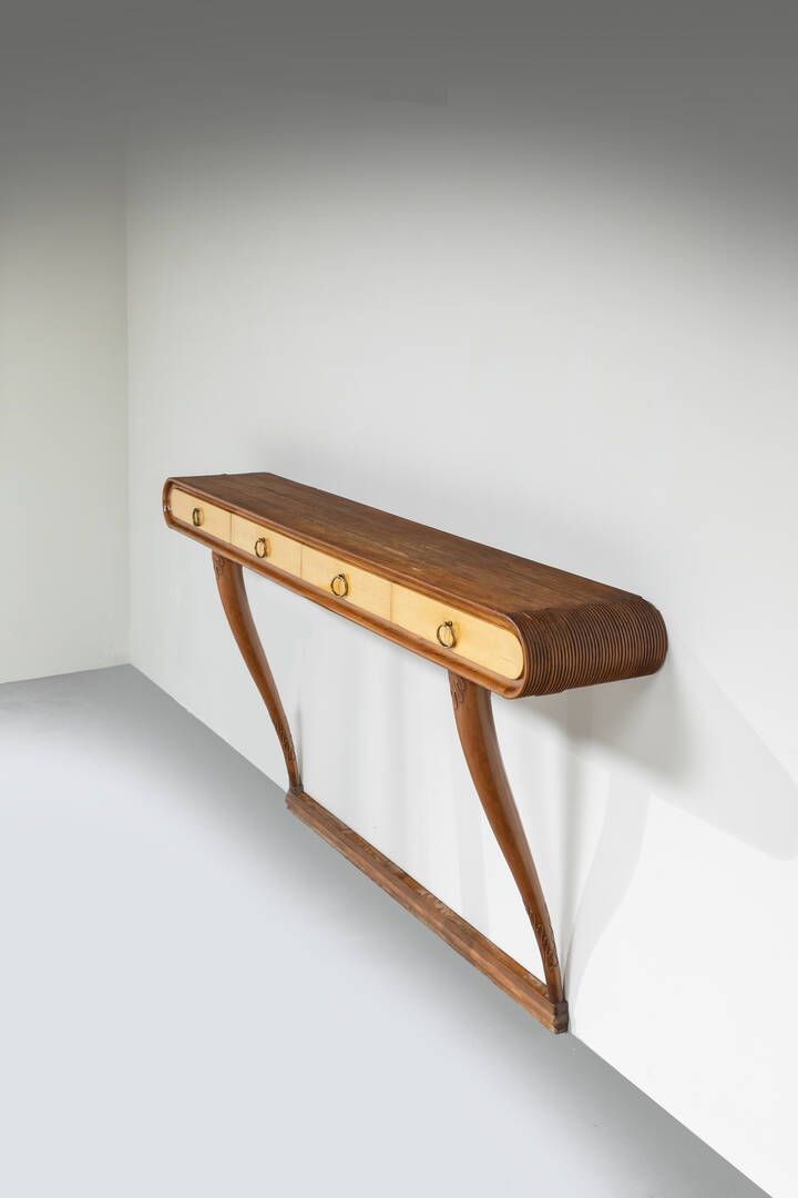 Console in legno con particolari in ottone. Anni '50 cm 92x180x30 Difetti
