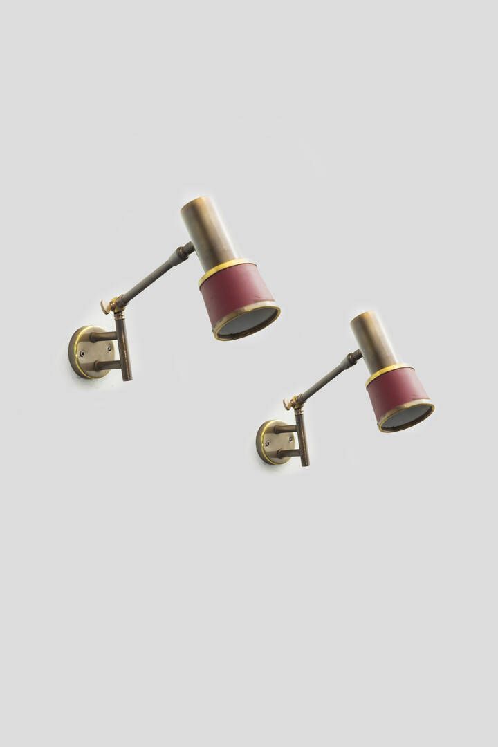 Struttura ottone brunito particolari in metallo e skai. Anni '50 h cm 15x8x28 Difetti