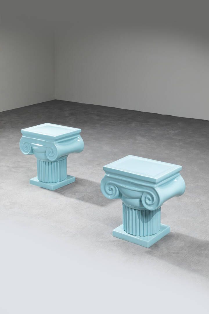 Coppia di comodini a forma di capitelli in ceramica smaltata. Anni '70 cm 44 5x45x30