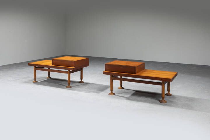 Coppia di comodini in legno. Etichetta del produttore Anni '60 cm 42x94x45 Difetti