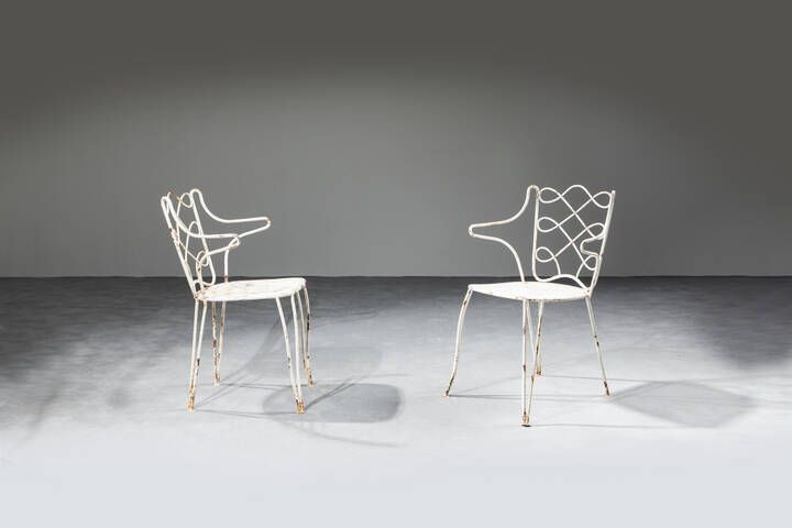 Coppia di poltroncine in metallo verniciato. Prod. Casa e Giardino anni '50 cm 83x61x50 Difetti