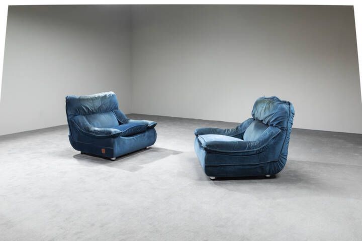 Coppia di poltrone con imbottitura rivestita in tessuto e piedini. Prod. LEV&LEV [..]