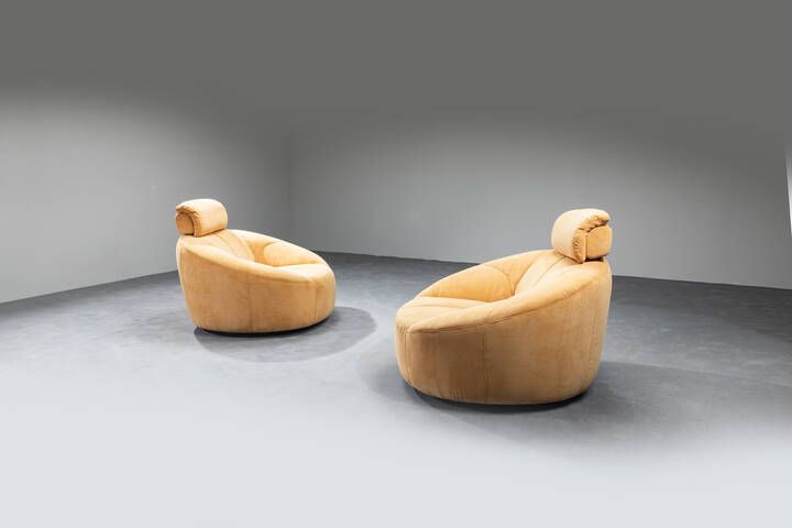 Coppia di poltrone con testiera regolabile rivestimento in tessuto. Anni '80 cm [..]