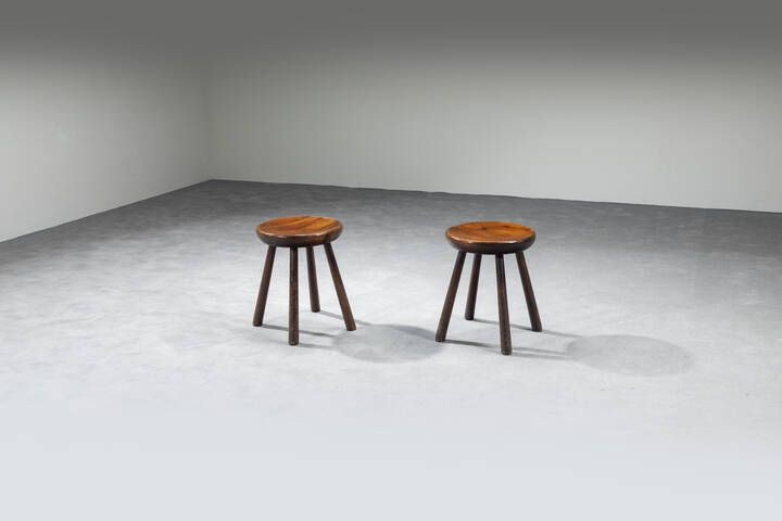 Coppia di sgabelli in legno. Anni '60 cm 45x35 5 Difetti