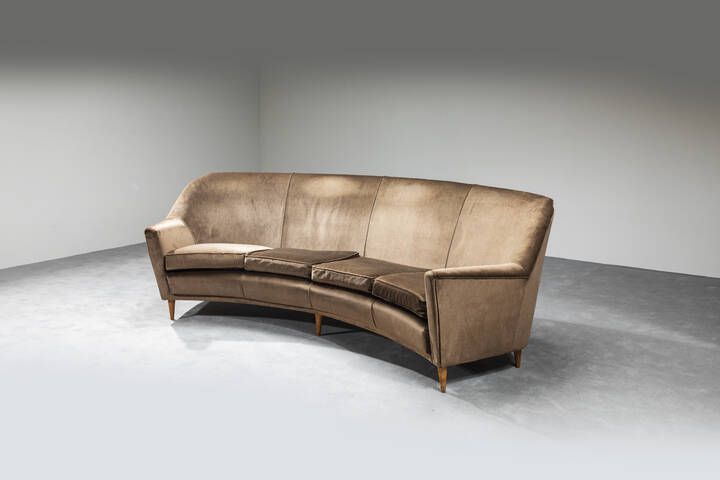 Struttura e gambe in legno imbottitura rivestita in tessuto. Anni '50 cm 87x258x110 Difetti