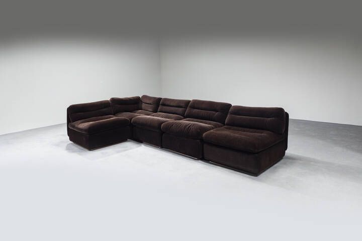 Divano modulare composto da cinque elementi supporti in legno imbottitura rivestita in tessuto. Anni '70 cm 65x290x150 Difetti
