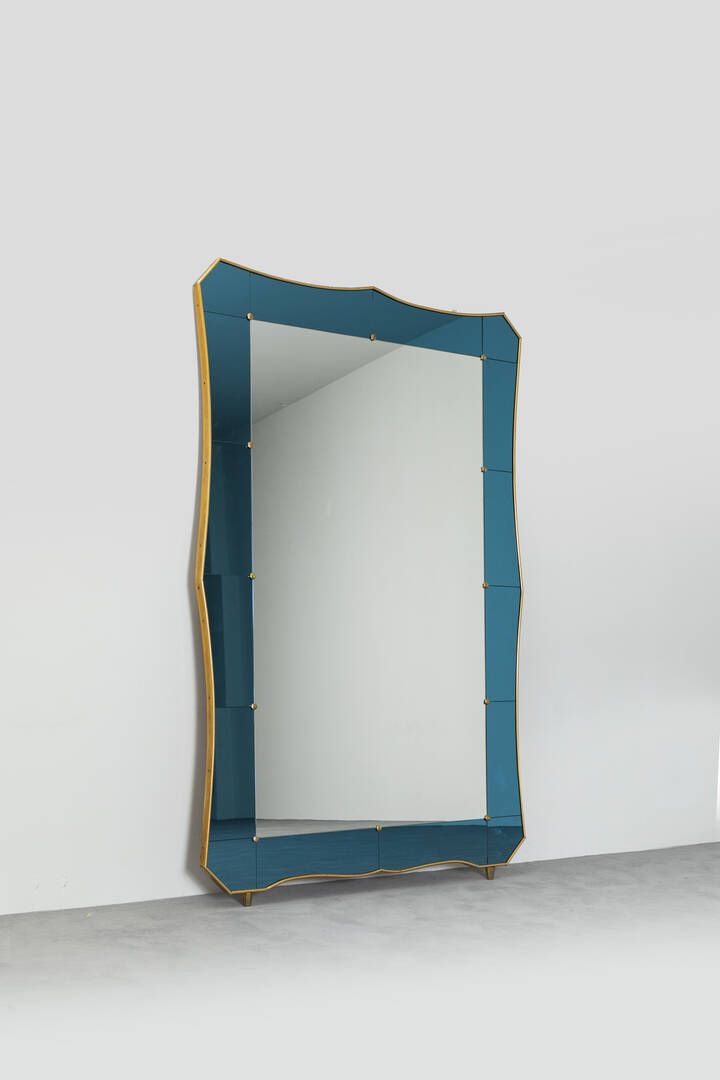 Grande specchiera con piedi bordo in bottone vetri colorati. Anni '70 cm 197x124 [..]