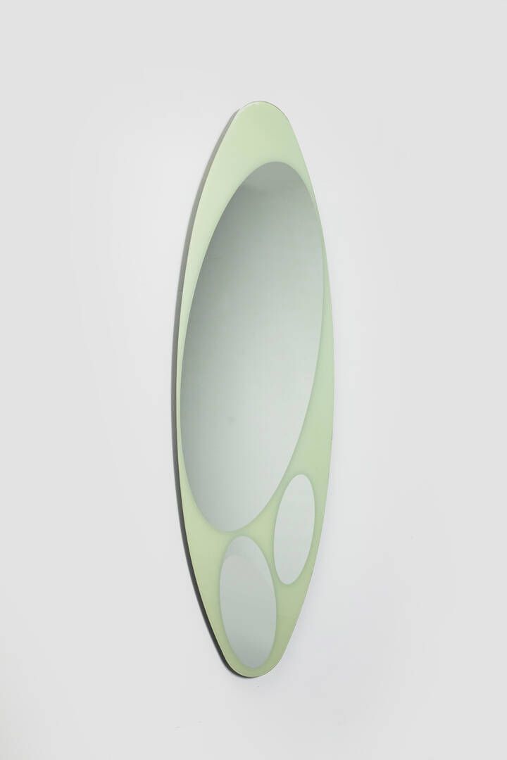 Grande specchio con vetro serigrafato e cristallo specchiato. Prod. Sica anni [..]
