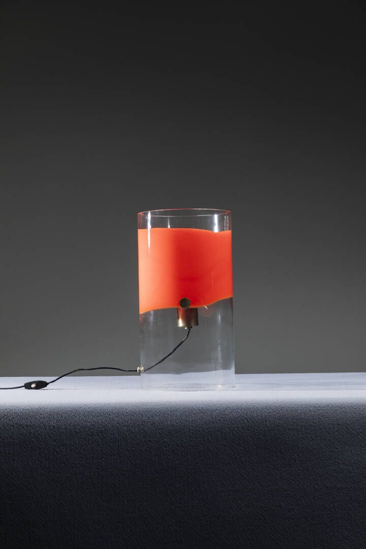 Lampada cilindrica in vetro particolari in metallo. Prod. Vistosi anni '70 h [..]