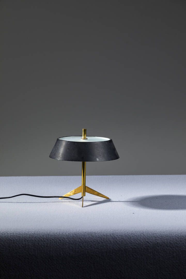Struttura in ottone diffusore in alluminio verniciato e vetro. Anni '60 h cm 22x20 Difetti