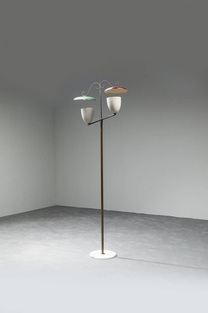 Struttura in ottone diffusori in alluminio verniciato. Base in marmo. Anni '50 h cm 192x63 Difetti