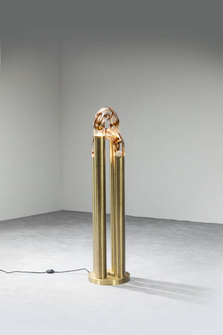 Struttura in ottone e diffusori in vetro. Anni '70 h cm 125x25 Difetti