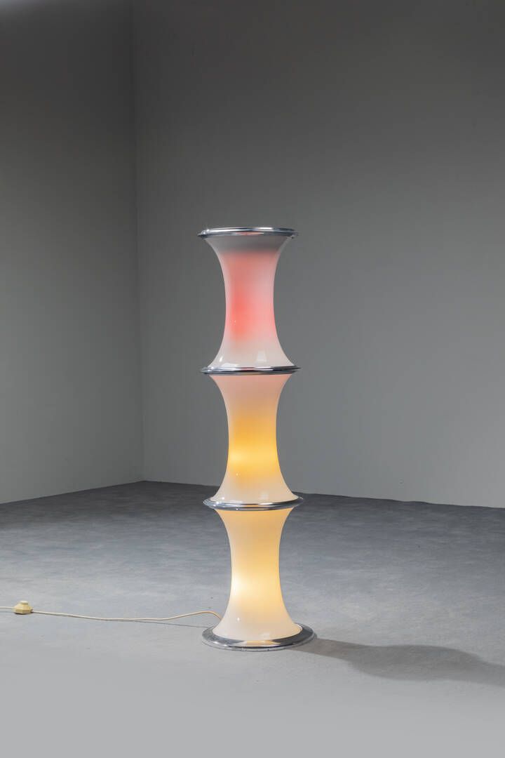 Vetro opalino e metallo cromato. Prod. Vistosi anni '70 h cm 125x32