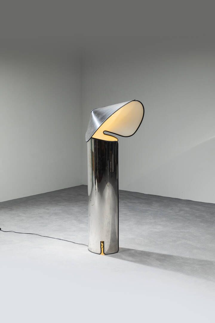 Foglio di metallo cromato e smaltato. Prod. Flos 1967 h cm 145x51x72 Bibl.: Fulvio Ferrari Napoleone Ferrari Luce: Lampade 1968-1973 il nuovo design italiano Allemandi Torino 2002 ill. 118 Difetti