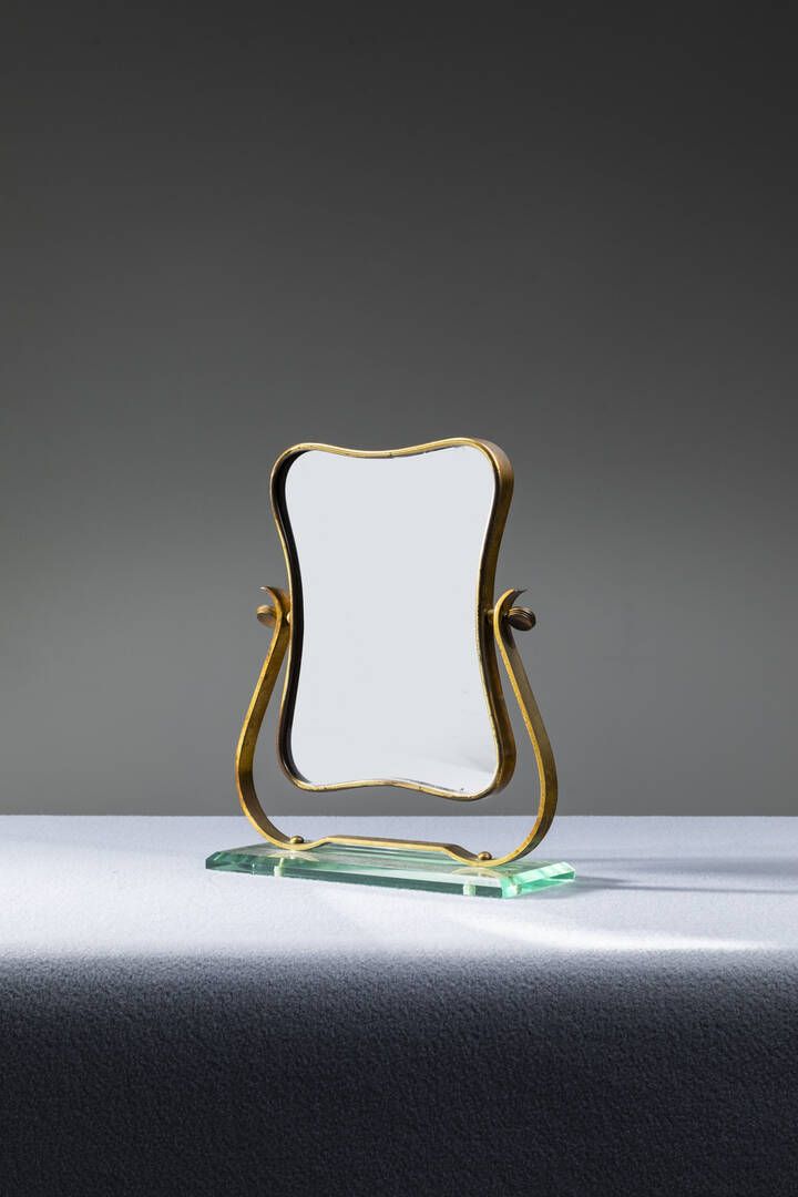Struttura in ottone base in vetro. Anni '50 cm 37x31x12 Difetti