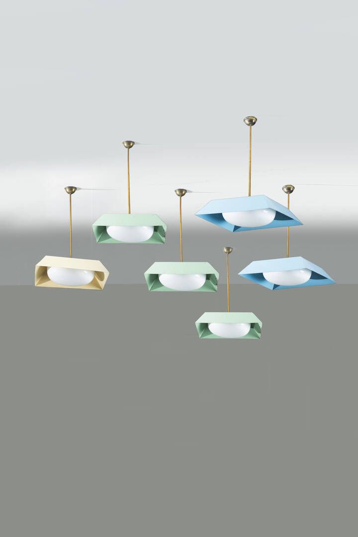 Struttura in metallo verniciato diffusore in vetro e particolari in ottone. Anni '60 h cm 65x44 Difetti