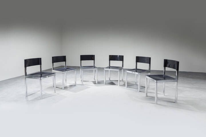 Sei sedie con struttura in acciaio seduta e schienale in plastica. Anni '70 cm [..]