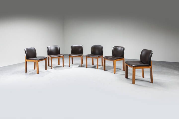 Sei sedie in legno rivestimento in similpelle. Anni '60 cm 78x49x52 Difetti