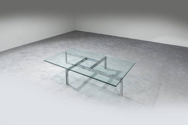 Struttura in acciaio e piano in cristallo. Anni '70 cm 30x150x80 Difetti