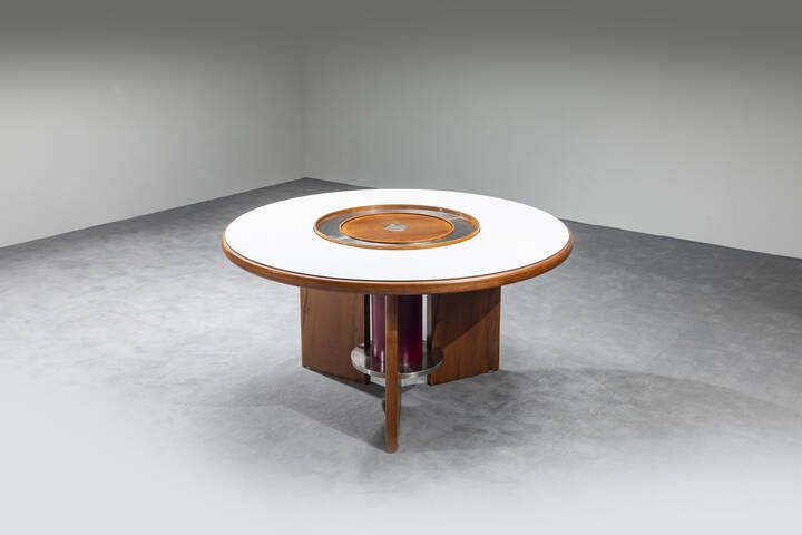 Legno piano in laminato particolari in acciaio e cilindro in plastica Prod. Bernini anni '70 (aperto) cm 85x130 (chiuso) cm 71 5x130 Piccoli difetti