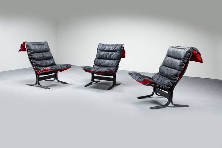 Poltrone componibili in legno con imbottitura rivestita in cuoio. Prod. Westnova 1960 cm 100x66x85