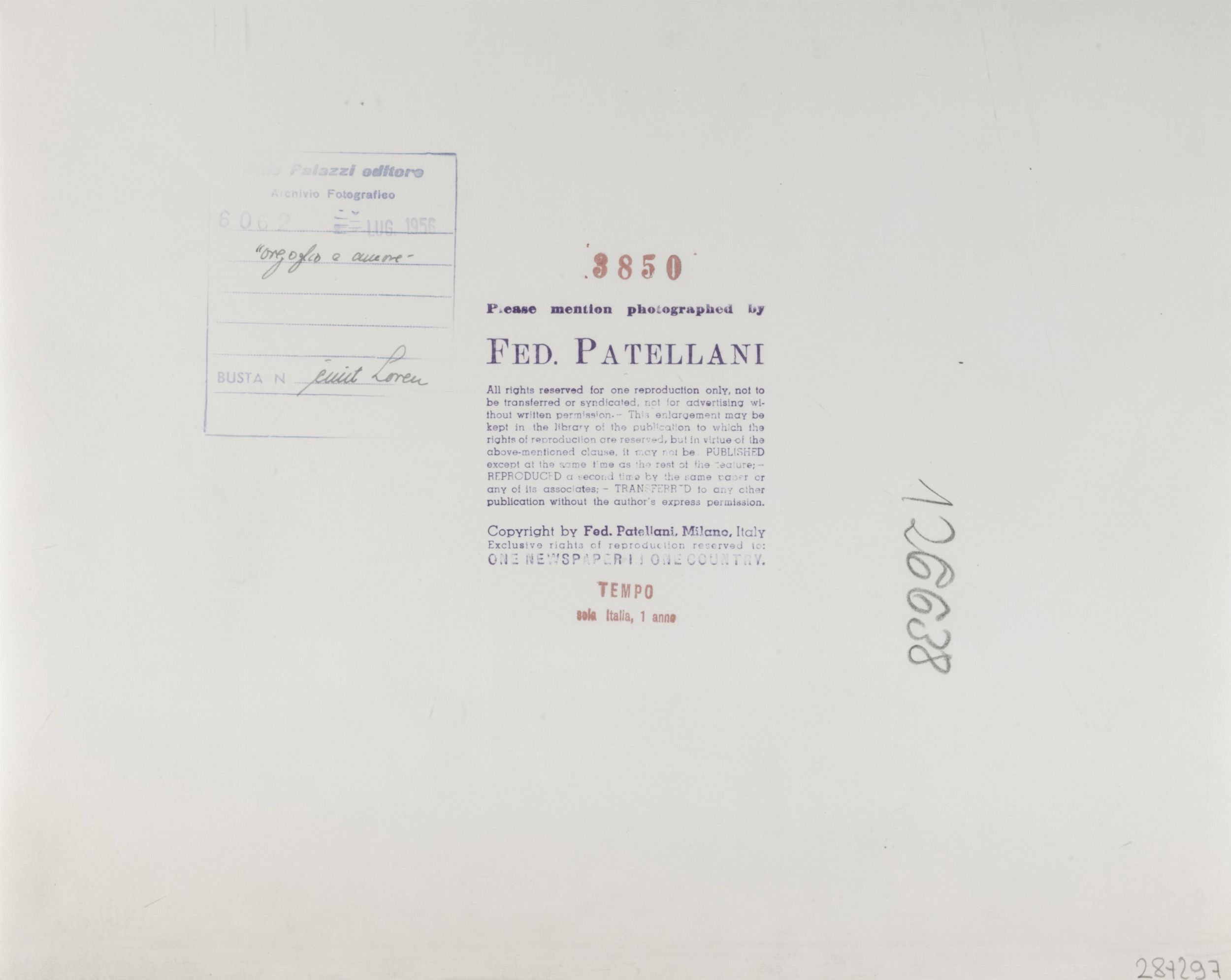 1956 timbri Fed. Patellani, Archivio Fotografico Aldo Palazzi editore e Tempo al retro