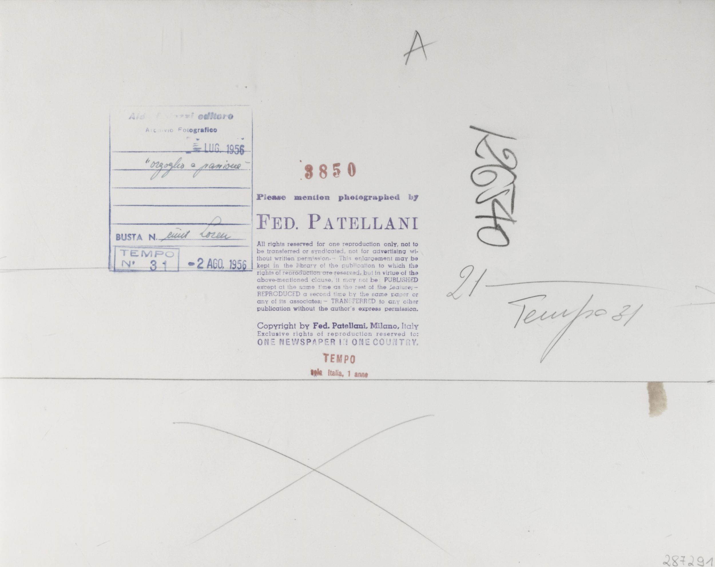 1956 timbri Fed. Patellani, Archivio Fotografico Aldo Palazzi editore e Tempo al retro
