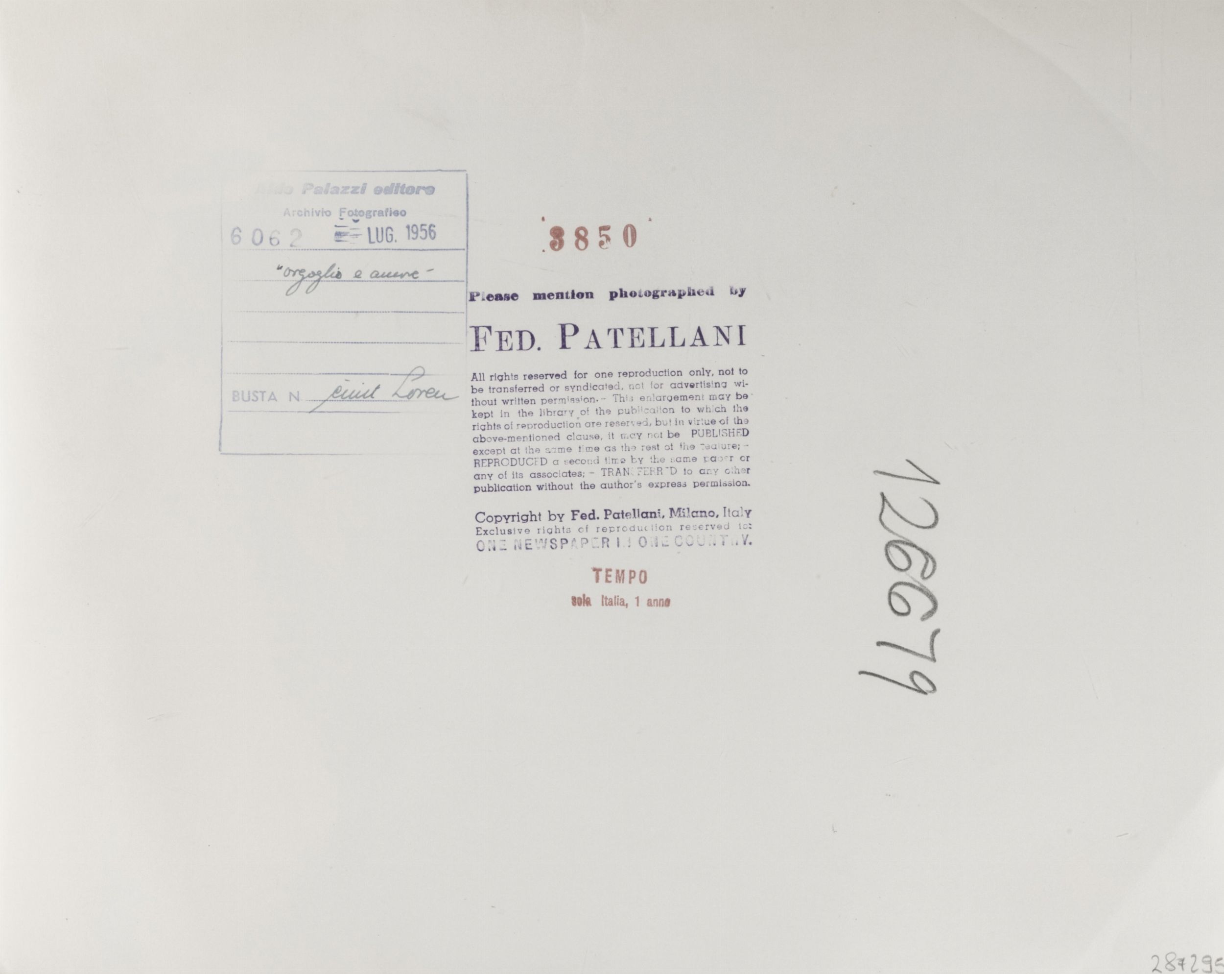 1956 timbri Fed. Patellani, Archivio Fotografico Aldo Palazzi editore e Tempo al retro