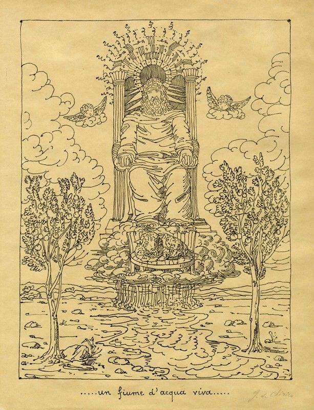 Litografia. mm 293x220. Foglio: mm 345x270. Firma a matita in basso a destra. Tavola proveniente da L'Apocalisse. Così Giovanni Gazzaneo: "Nessuno, da almeno mezzo millennio, aveva disegnato un'Apocalisse così poco apocalittica come De Chirico. [...] Le pagine abitate da mostri e draghi, oscurate dalle tenebre dell'Anticristo e percorse dai flagelli orrendi dei quattro cavalieri, diventano in De Chirico un racconto fiabesco, insieme spontaneo e colto, soffuso in certi punti di un evangelico spirito d'infanzia, in altri di solenni accenti classici".