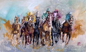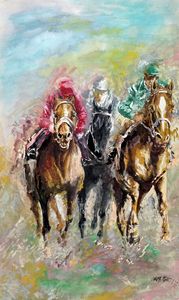 Olio su tavoletta. cm 185x110. Iscritto: "F. Gioli" in basso a destra.