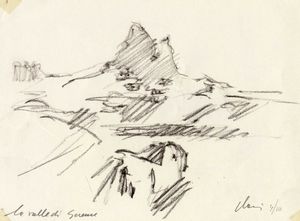 1937. Tecnica mista su carta greve. cm 30x50. Firmata e datata in basso a destra.
