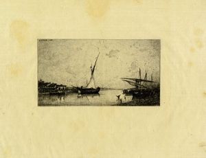 1869-72. 1) Un soir, Bords du Rhône à Rix . 1869. Acquaforte su carta vergellata. mm 160x240. Foglio: [..]