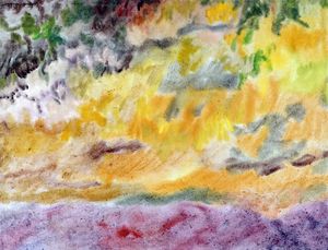 Tecnica mista su carta greve applicata a masonite. mm 700x500. Firma in alto a destra: "Fra".