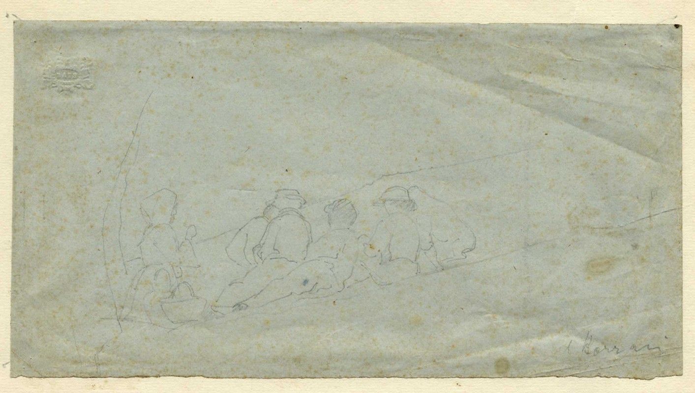 Matita su carta. mm 95x180. Iscritto "Borrani" in basso a destra. Timbro a secco con stemma in alto a sinistra.