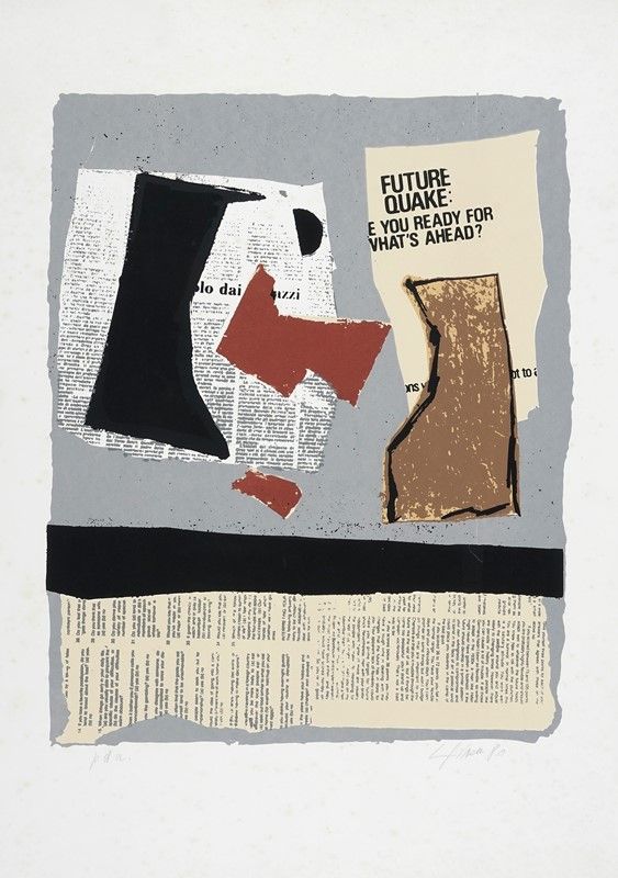 Litografia. mm 495x395. Foglio: mm 690x495. Firma indecifrata e data a matita in basso a destra e "p.d.a" in basso a sinistra. Timbro a secco in basso a destra.