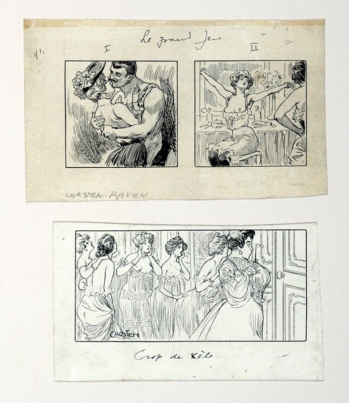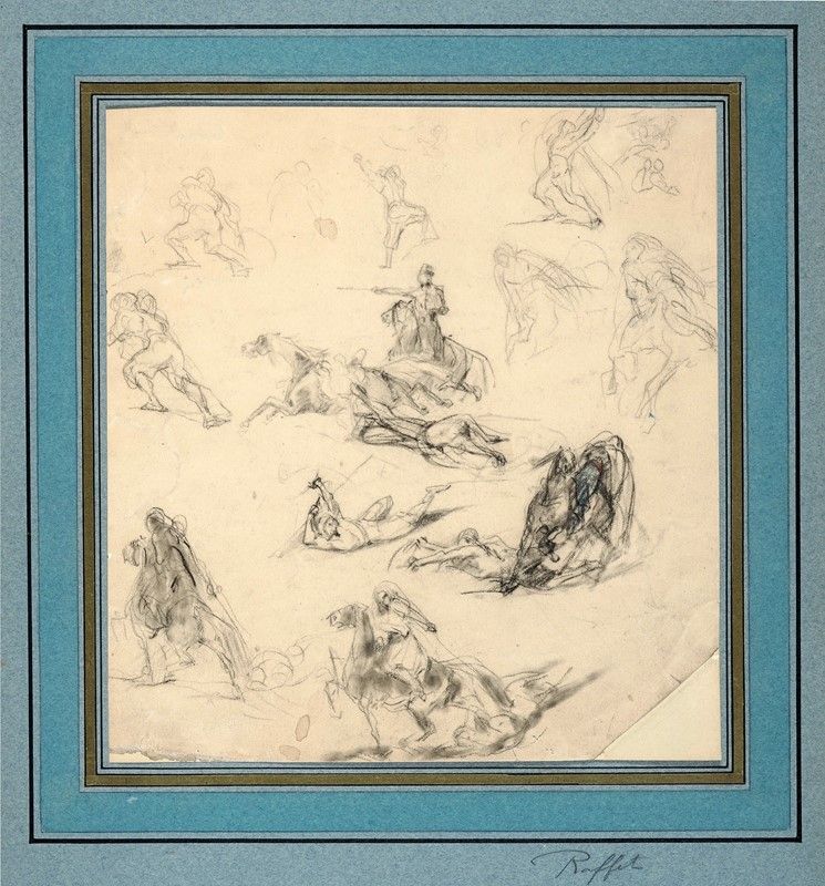 Raccolta di 13 disegni tra matite, penne e inchiostri di china ed acquerelli. mm 90/495x95/320. Alcuni firmati a matita o penna e inchiostro di china. Tra i vari artisti figurano: Deveria Achille, Gerbault Henry, Carrière Eugène e Bach Sigismond Ferdinand.