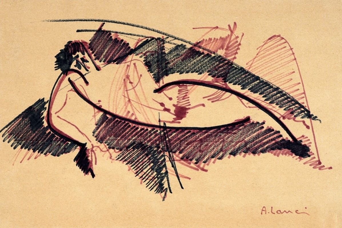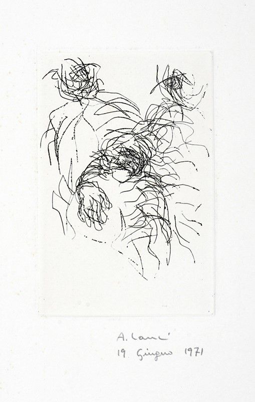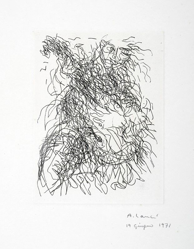 Raccolta di 9 opere tra penne e inchiostro di china, carboncini, pastelli colorati, acquerelli ed incisioni su carta entro cartella anche'essa dedicata e disegnata dall'artista (mm 510x355). mm 220/400x245/490. Tutte le opere sono firmate, 8 di queste recano anche la data.