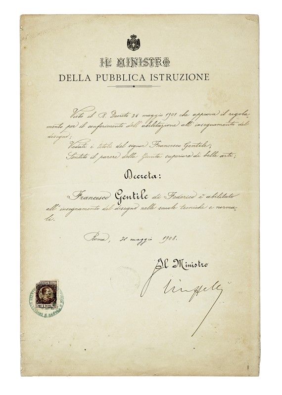 Matita, acquerello, penna e inchiostro di china su cartoncino. mm 420x310 cad circa. Alcuni firmati. SI AGGIUNGE: Diploma di abilitazione al ruolo di insegnante di disegno del 1908.