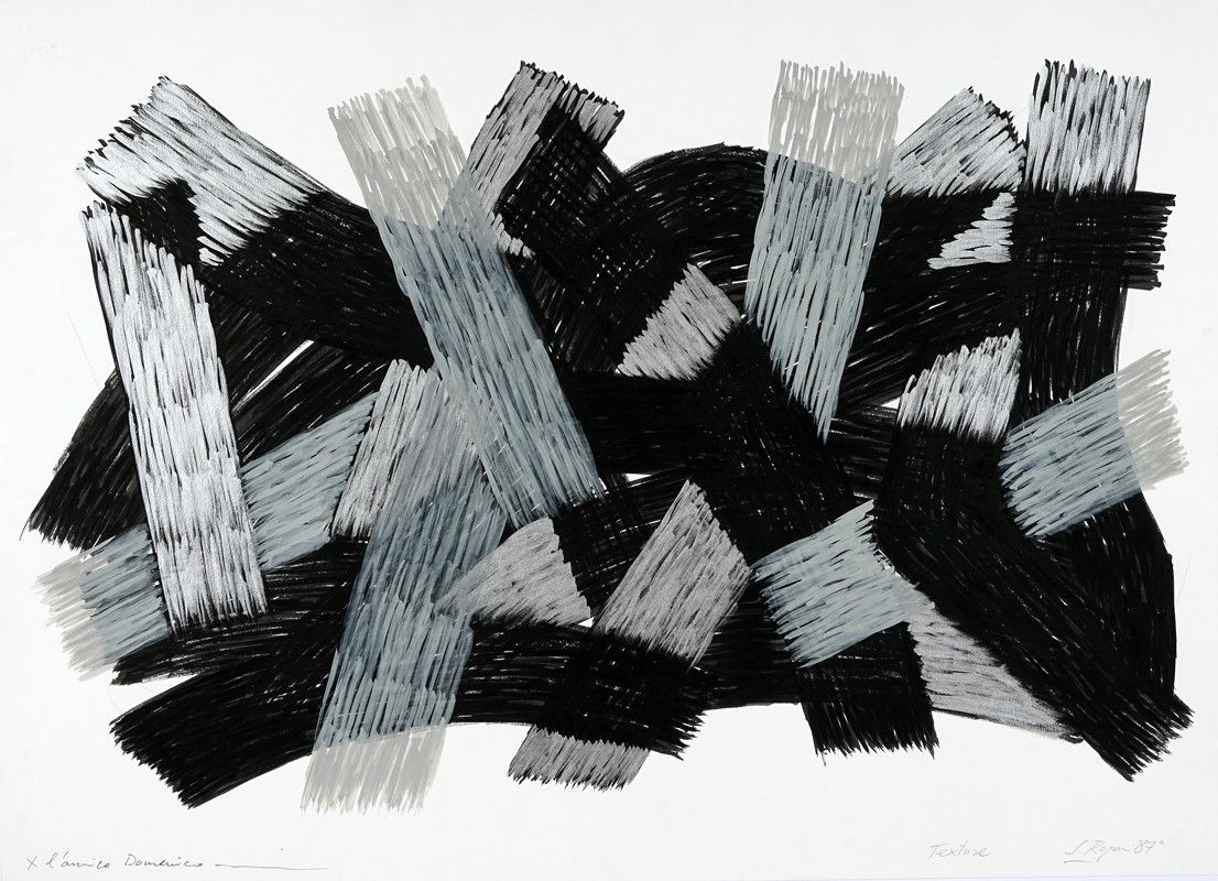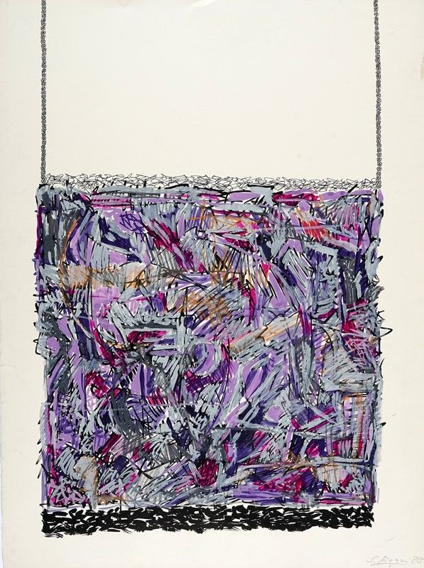 Tecniche miste su carta greve. mm 515/765x480/560. Un'opera firmata Adriana Pincherle a penna e inchiostro di china nero al margine inferiore destro del foglio, altri 7 fogli con studi di textures firmati "Rogai S.", alcuni datati. Una di queste opere presenta un altro studio al verso.